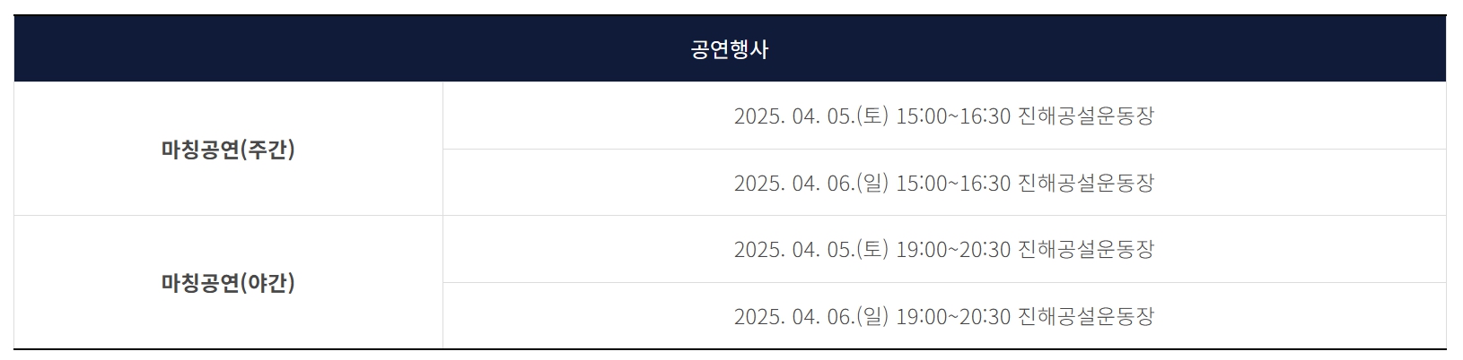 - 창원종합운동장 → 진해까지 셔틀버스 운행