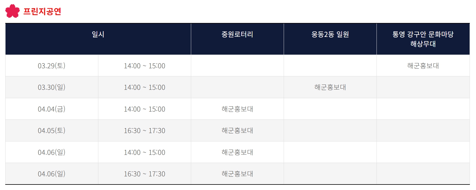 - ✔ 해군사관학교 개방과 군함 공개 행사에서 진해만의 독특한 문화를 체험하고,